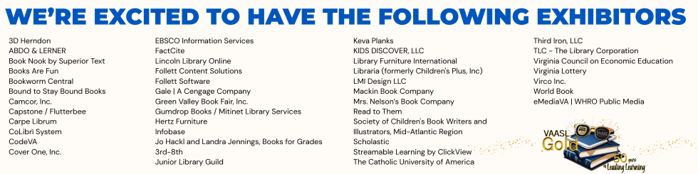 The Virginia Association of School Librarians (VAASL) has a membership of over 1200 school librarians and educators, many of whom are district-level supervisors with large purchasing budgets and decision-makers for the largest school systems throughout Virginia. We plan to have a larger than normal turn out this year for the 50th anniversary! Your financial support of the VAASL annual conference helps us to provide librarians around the state with this professional development event.